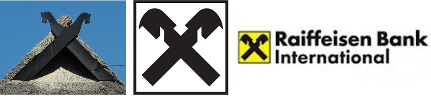 A Cruz de Gable foi escolhida como marca enquanto Friedrich Wilhelm Raiffeisen ainda estava vivo. Os ocupantes das casas colocavam a cruz de gable no telhado para afastar todos os perigos. A organização Raiffeisen, portanto, escolheu este sinal protetor como seu símbolo, para que seus membros também protejam-se contra os perigos econômicos no dia a dia da cooperativa. Na extremidade da cruz pode ser vista a cabeça de um cavalo.