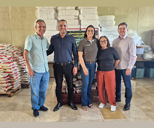 A instituição foi indicada para receber as cestas básicas pela cooperativa Sicoob Credseguro, que foi representada pelo superintendente Operacional, Valdeson Paiva, durante a entrega dos alimentos, além da presença da analista de Cidadania e Sustentabilidade do Instituto Sicoob, Sara Molina.